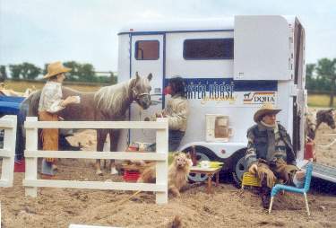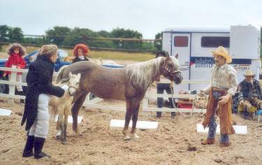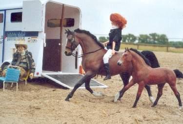 Heute geht es auf die Stutenschau auf Moorredder. Ian und Ramon luden die Stuten in den Hänger und fuhren los zum Turnierplatz. wo dann die Vorbereitungen begannen. |