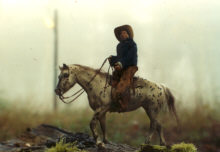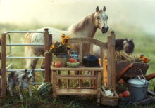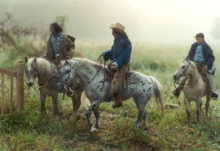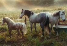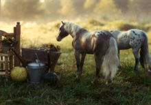 Hier sehen wir einen Nebelausritt mit einem meiner älteren veränderten Breyerpferde im Vordergrund, der Appaloosastute LBR Ebony Patches. |