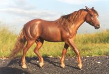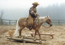 LBR Poco Tarlena,eine Breyer rrh Stockhorse Mare, die uns hier einen selbstgebauten Westernsattel und -zaum im Oldielook präsentiert |