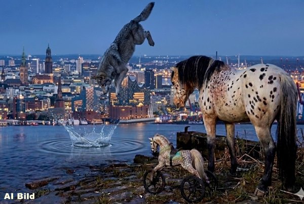| 2. 4. 26 | Ranchnachrichten Die letzten Tage ist in Hamburg ja einiges passiert. So war ein Wolf in die Innenstadt gelaufen und aus der Alster gefischt worden. Bei einem ÖRR Sender sagten sie allerdings, er sei dahin gelaufen und in die Elbe gesprungen. Boah! So?: ![]() Ähm, oops....Mist, KI-Fake Apropos Elbe. da sind wir auch mal unterwegs ![]() ![]() Ähm. Huch? ![]() TeeVee war enttäuscht, er dachte, er könnte jetzt ein russisches U-Boot entern. Mindestens ![]() ![]() Heute sind wir auf der Northern Range unterwegs ![]() Ansonsten glänzte Plörre wieder durch schlechtes Benehmen, aber er ist ja auch ein Kaffeewasserappy ![]() ![]() ![]() ![]() |