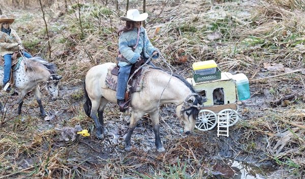| 19. 3. 26 | Ranchnachrichten![]() Na, da hat aber einer Lehmfüße nach seinem gestrigen Abenteuer XD ![]() ![]() ![]() ![]() ![]() Zuhause brachte der gelbe Pferdetransporter etwas sehr seltenes und winziges. Bad Ass Rocky fand den garnicht so winzig.... (Im H0 soll es nur 9 Stück geben, da es ein Versehen war mit der Größe, so hab ich es verstanden. Umso mehr freu ich mich auch noch so nen süßen ergattert zu haben, von Jessica Geer bemalt. Er hat ne Metallbase, auf der er mit winzigsten Magneten steht, aber er steht auch auf dieser Base von mir weil da Eisendraht drin ist, ich mach aber demnächst nochmal so eine aus Blech) ![]() Der kleine Bad Ass Rocky ließ sich übrigens nicht einschüchtern ... ![]() Am Modellpferdeladen fand heute eine LS statt ![]() ![]() Inzwischen ist Abend und durch Zufall fand ich heute in einem Trödelladen einen Bilderrahmen , der einfach super als Stockwerk drüber paßte. Ansonsten wird das rechte Schaufenster gerade umdekoriert ![]() ![]() Gene kam aus dem Trödelladen auch mit fetter Beute nach Hause ![]() Er hatte Plastiktüten voll Vintagegeschirr gekauft und eine Keksdose ![]() Da waren ja noch mehr tolle Sachen drin, zb ein Taschenmesser ( Jetzt darf Gene nicht mehr in die U-Bahn, aber die streikt ja eh nur noch) ![]() So, dann ab nach Hause , die Läden machen nun auch schon zu ![]() |